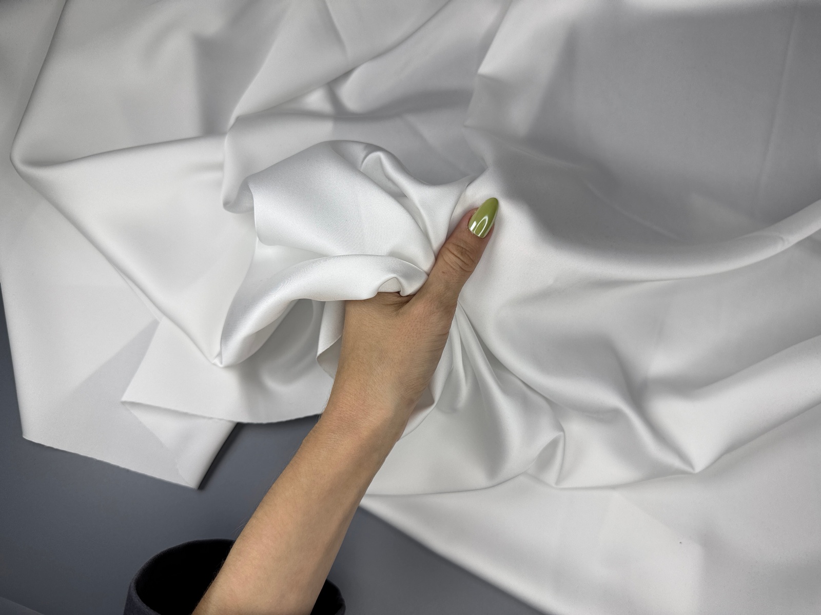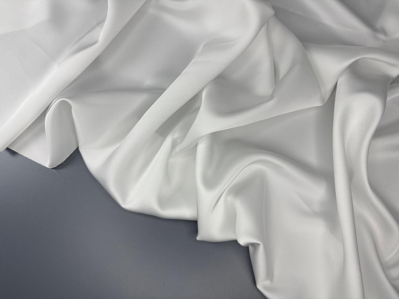 Дубайский шелк цвет белый – вид атласа с шелковистой поверхностью. Струящееся пластичное полотно, дает эффектные драпировки. Растяжим по поперечной нити. Средняя сминаемость. Не дает усадку. Плотненький. Никаких пятен от воды.Не боится зацепок. Идеально подходит для кроя изделий по косой!