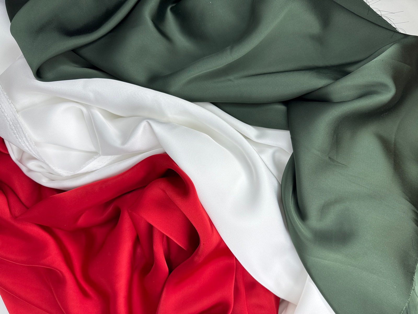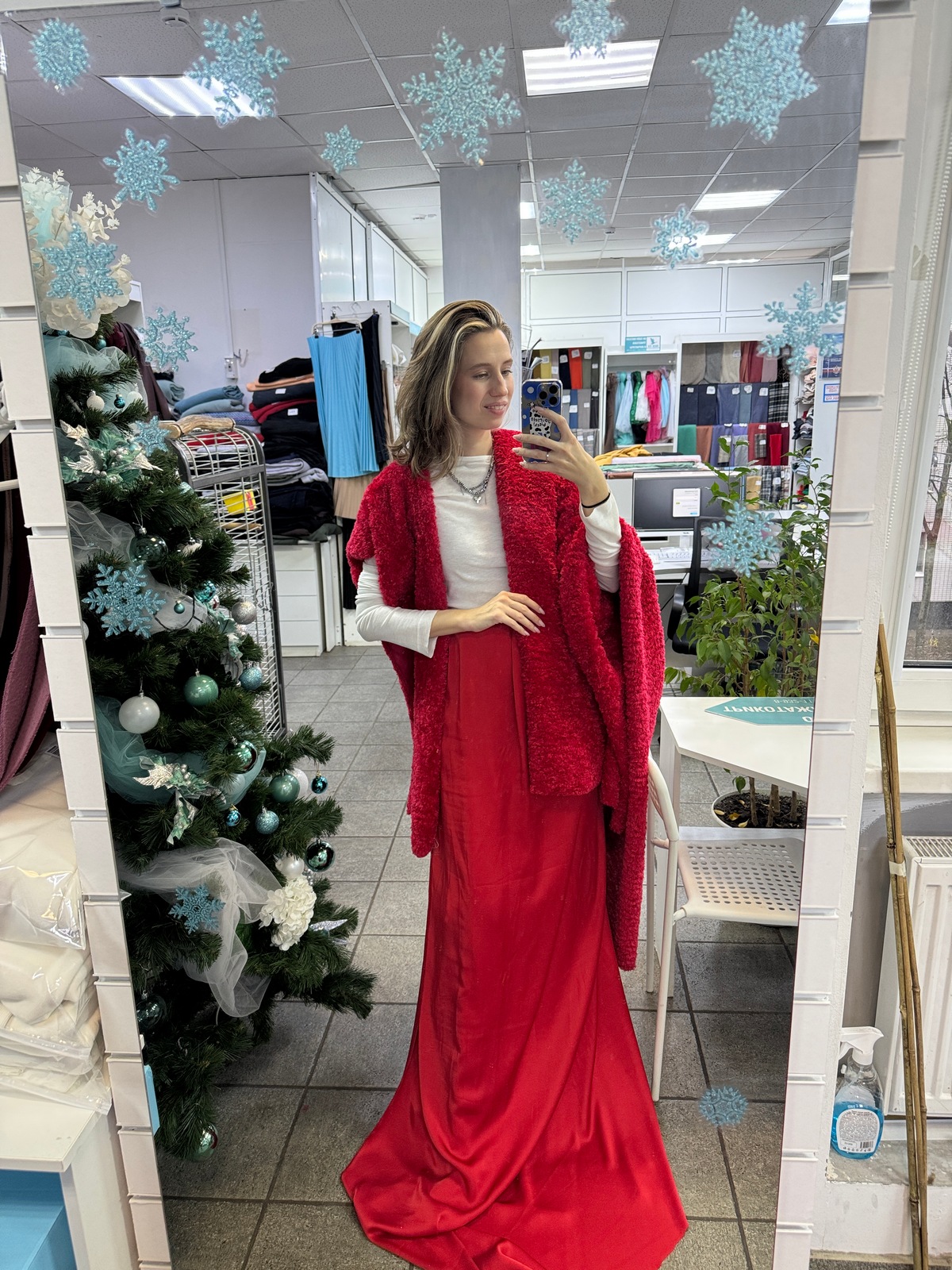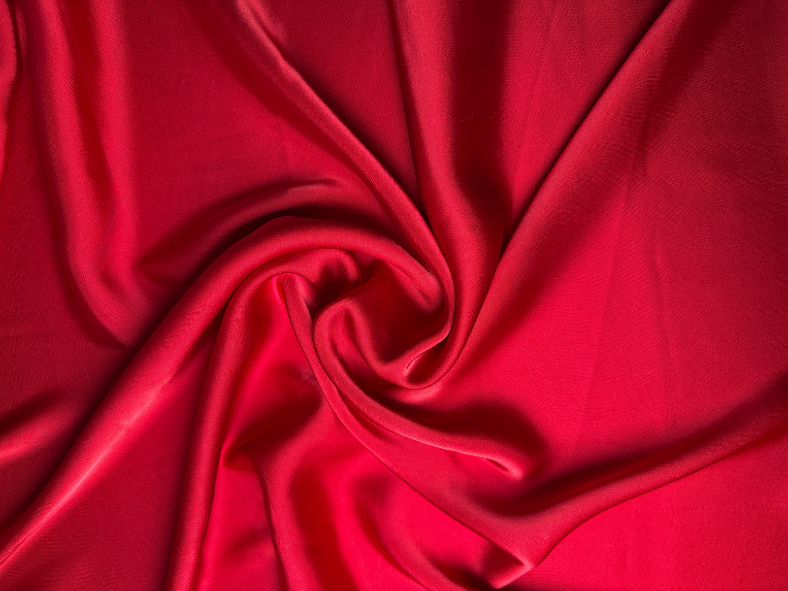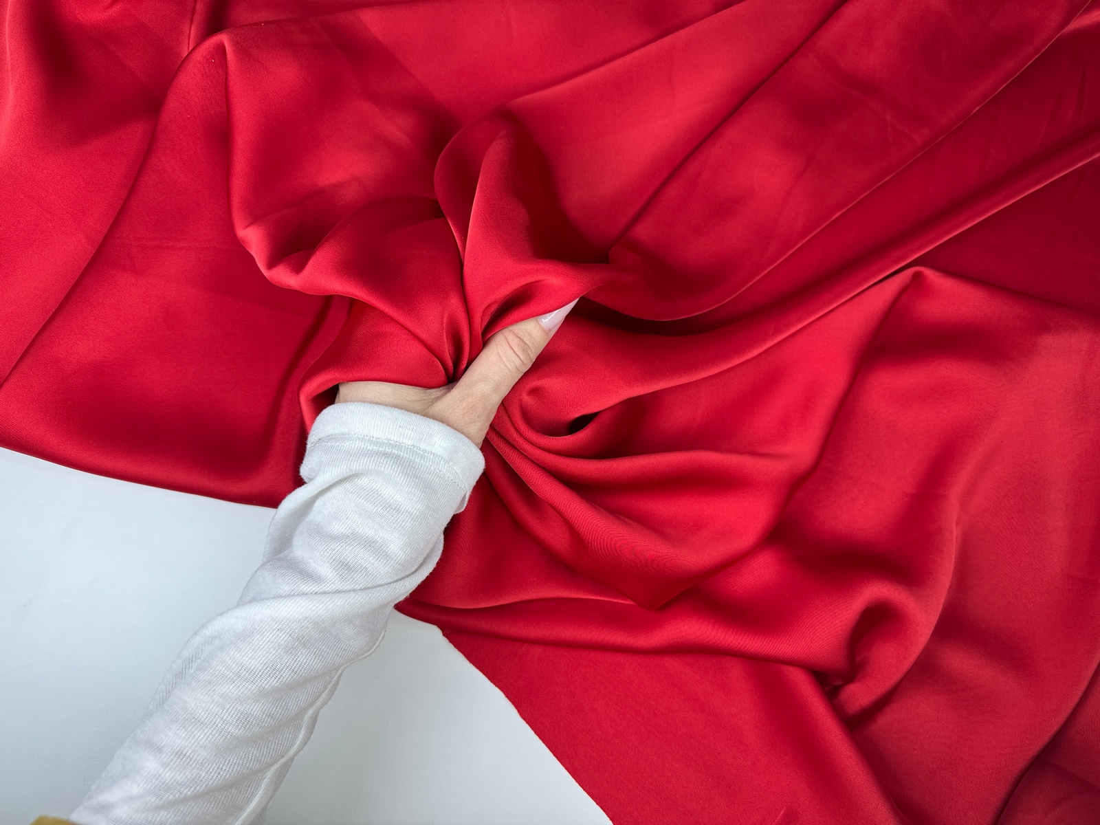 Дубайский шелк цвет красный – вид атласа с шелковистой поверхностью. Струящееся пластичное полотно, дает эффектные драпировки. Растяжим по поперечной нити. Средняя сминаемость. Не дает усадку. Плотненький. Никаких пятен от воды.Не боится зацепок. Идеально подходит для кроя изделий по косой!