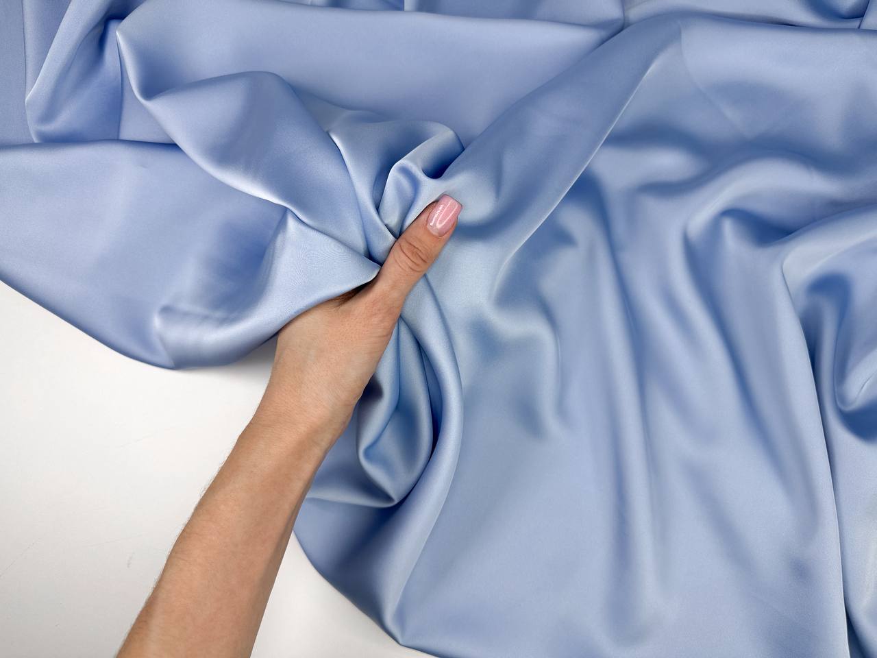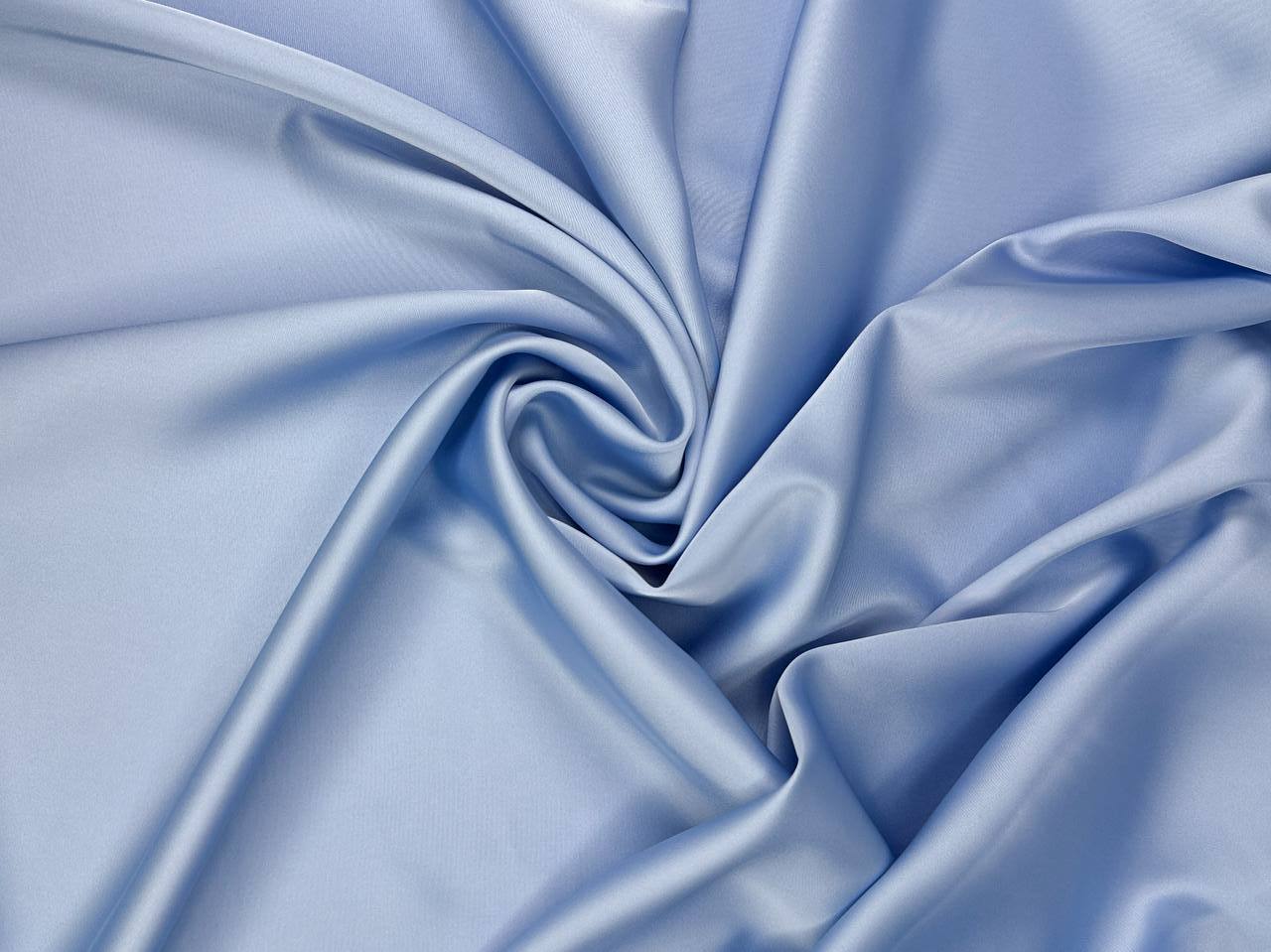 Дубайский шелк цвет нежно-голубой – вид атласа с шелковистой поверхностью. Струящееся пластичное полотно, дает эффектные драпировки. Растяжим по поперечной нити. Средняя сминаемость. Не дает усадку. Плотненький. Никаких пятен от воды.Не боится зацепок. Идеально подходит для кроя изделий по косой!
