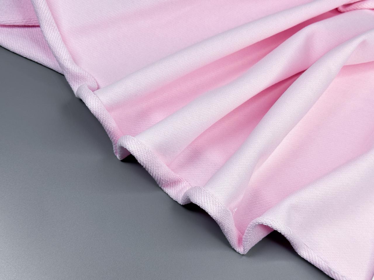 Ткань футер 3-х нитка плотностью 420 гр цвет светлый зефир 100% хлопок с микродиагональю. Линейка SUPREME. Отличительная особенность данной линейки: гладкая шелковистая лицевая сторона, изнанка с маленькой идеальной плотной диагональной петелькой, хорошо держит форму и цвет. Состав из 100% хлопка обеспечивает максимальный комфорт в носке. Лидер продаж на весенне-летний сезон. Дает усадку до 10%. Кашкорсе в тон.