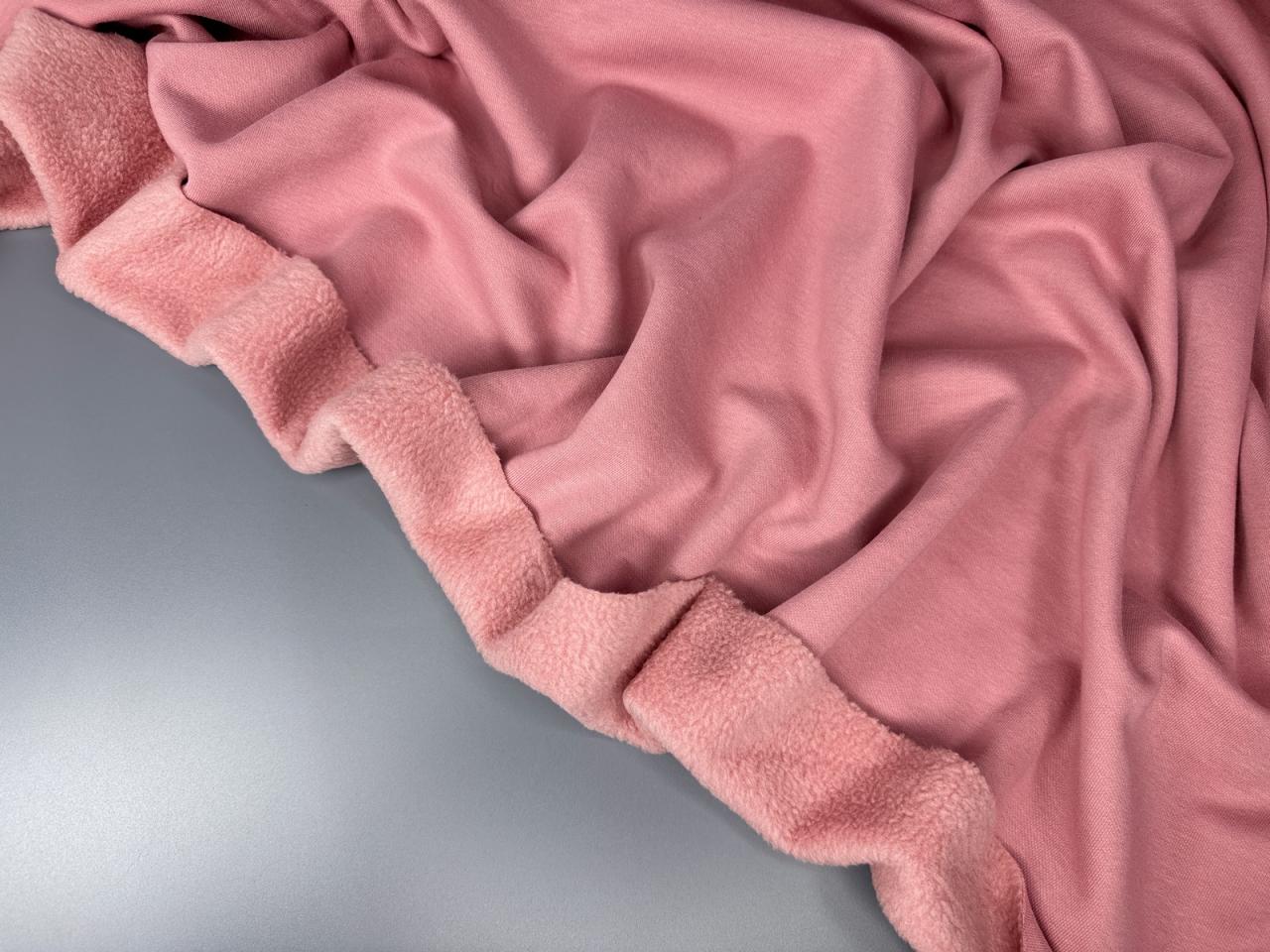Футер Барашек цвет пудра с 2-х сторон. Идеальная альтернатива футера с начесом для тех, кто не любит пушистую и подскатанную изнанку.