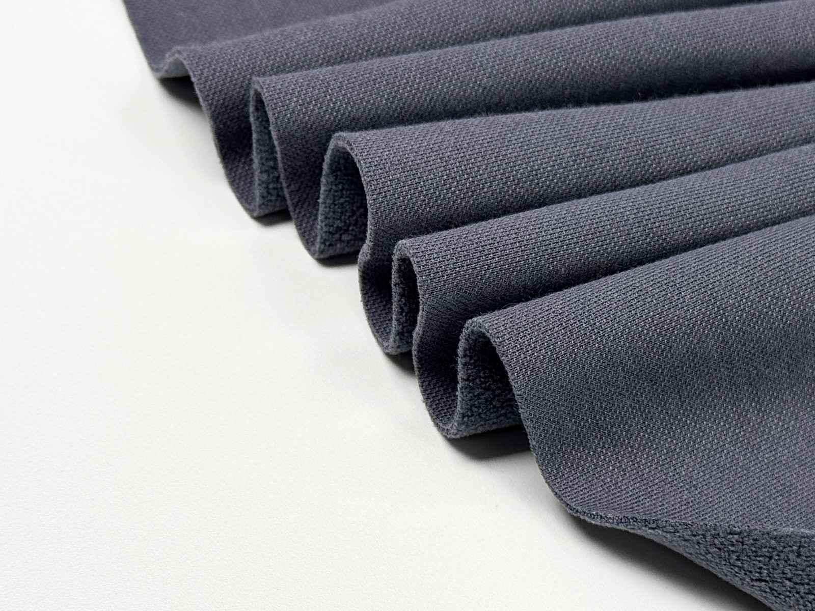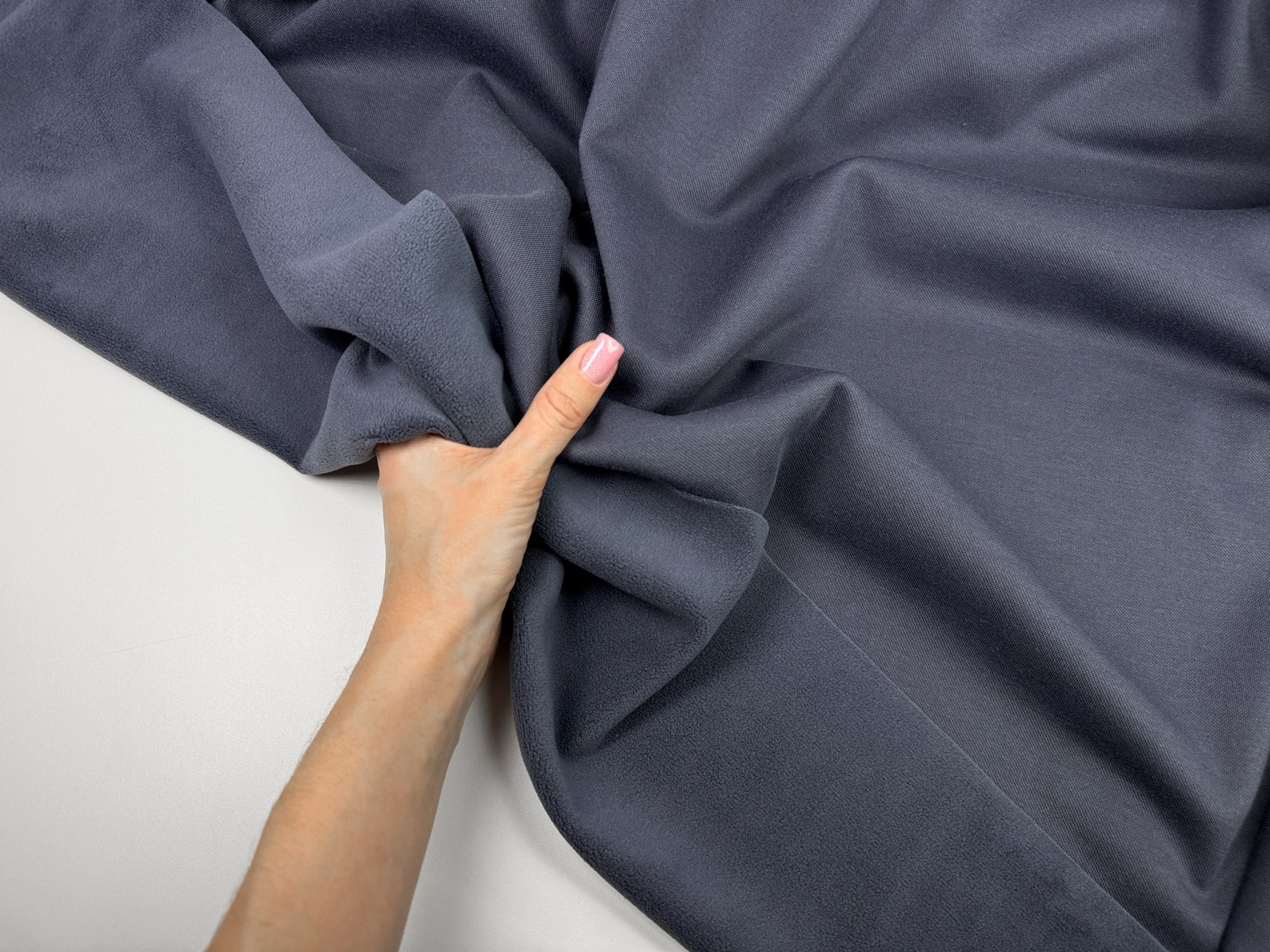 Ткань лакост утепленный цвет графит. Плотный смесовый трикотаж. Лицевая сторона с узнаваемой фактурой пике, изнанка с утеплением из евромеха. Практически не мнется. Высокая эластичность. Приятная к телу. Можно шить на две стороны.