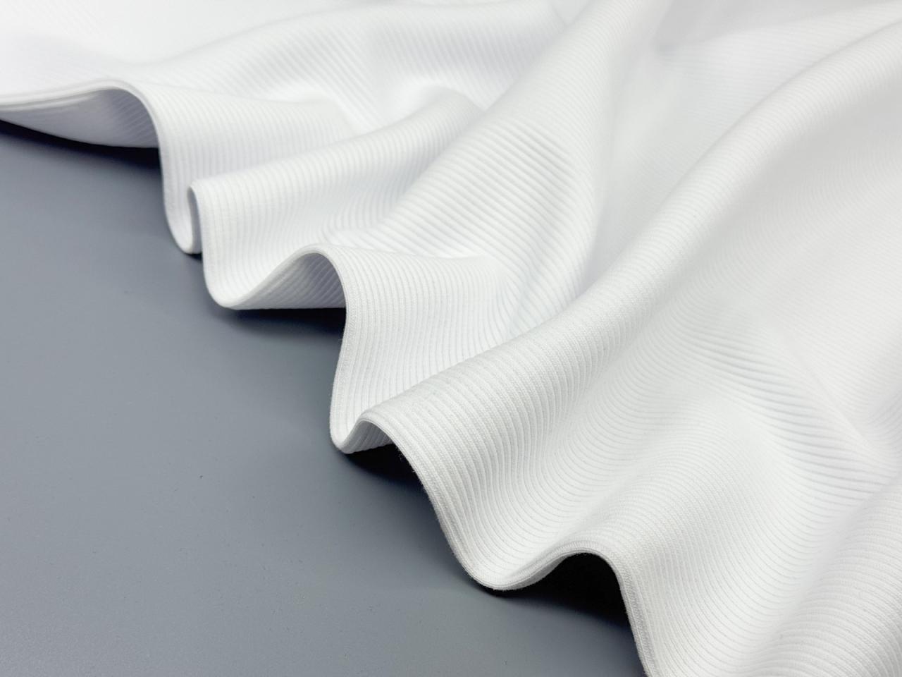 Кашкорсе соткан чулком (трубой) цвет белый. При разрезе ширина – 140см. Это фактурный трикотаж, напоминающий по вязке "лапшу". Основной материал для кашкорсе – это хлопок, но для улучшения эластичности в его состав включают лайкру.