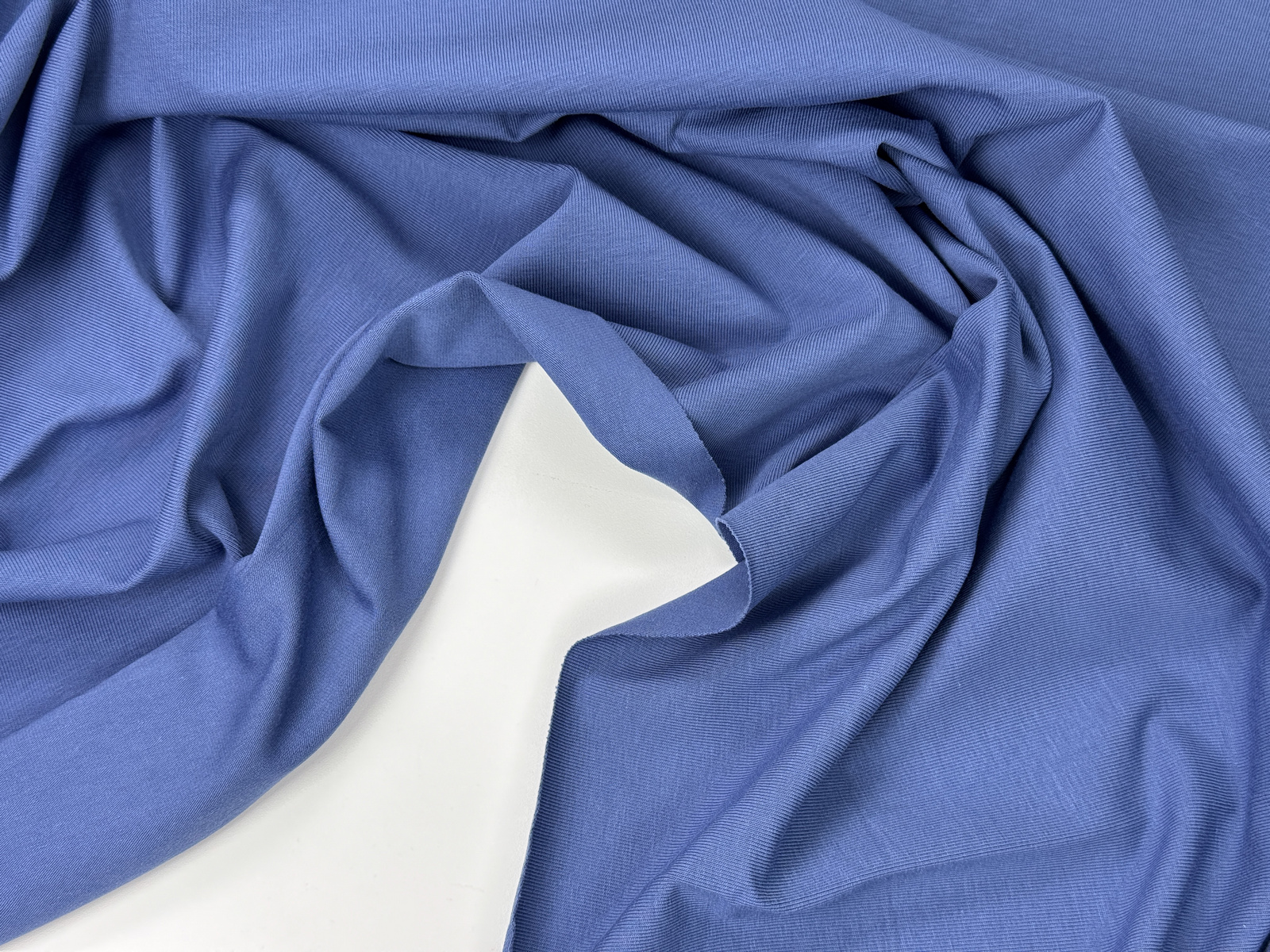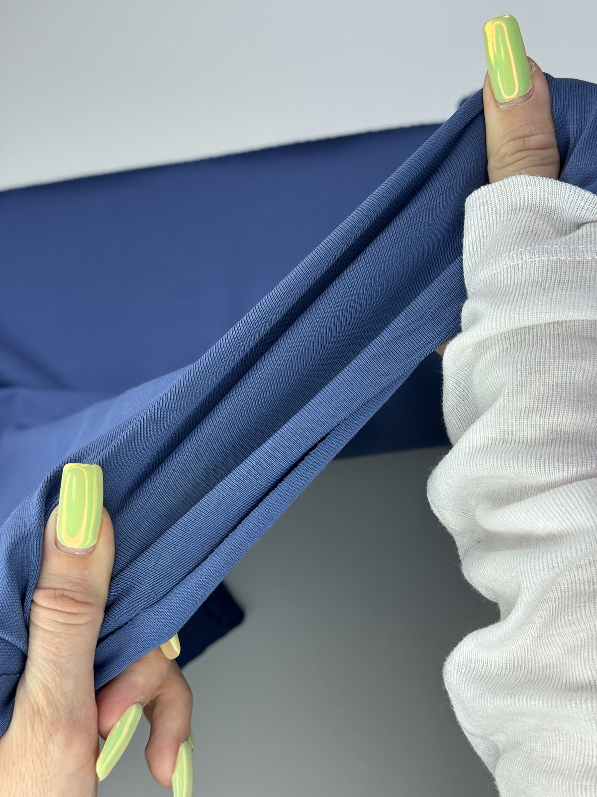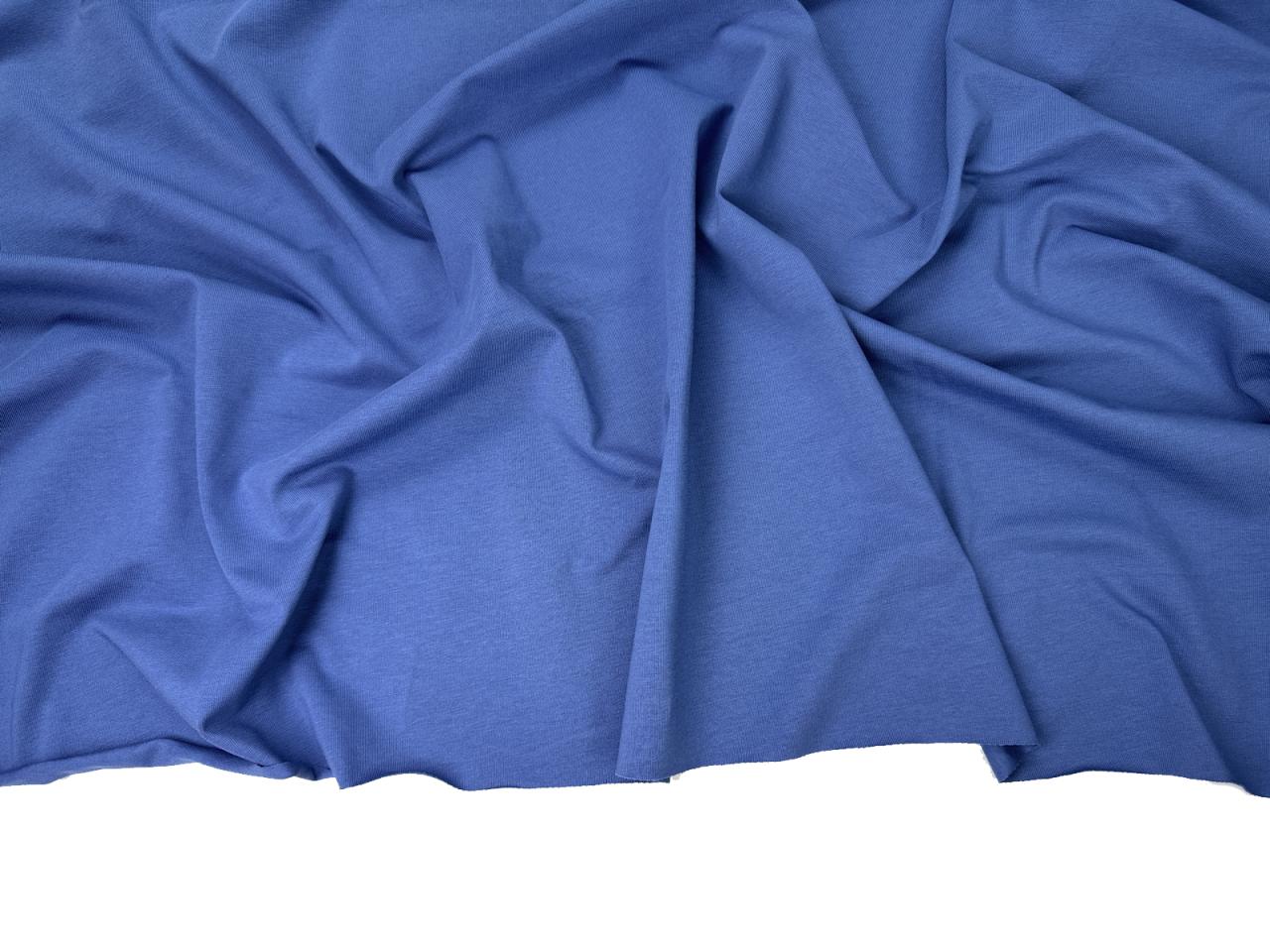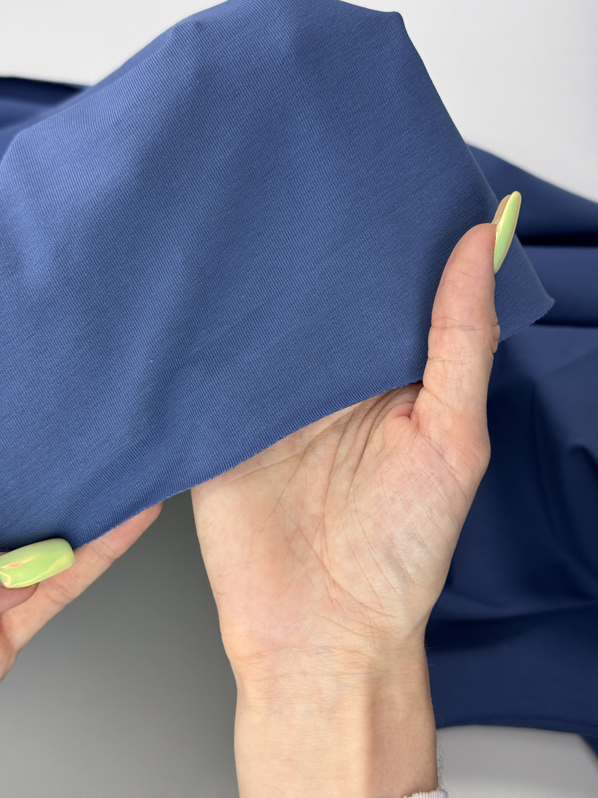 Кулирная гладь плотностью 200 гр цвет индиго. Материал представляет собой тонкое и эластичное полотно с гладкой фактурой с двух сторон. Данная плотность идеальный выбор для пошива футболок, так как ткань не просвечивает. Качество Компакт Пенье, значит материал не скатывается и долго сохраняет свою эластичность и форму.