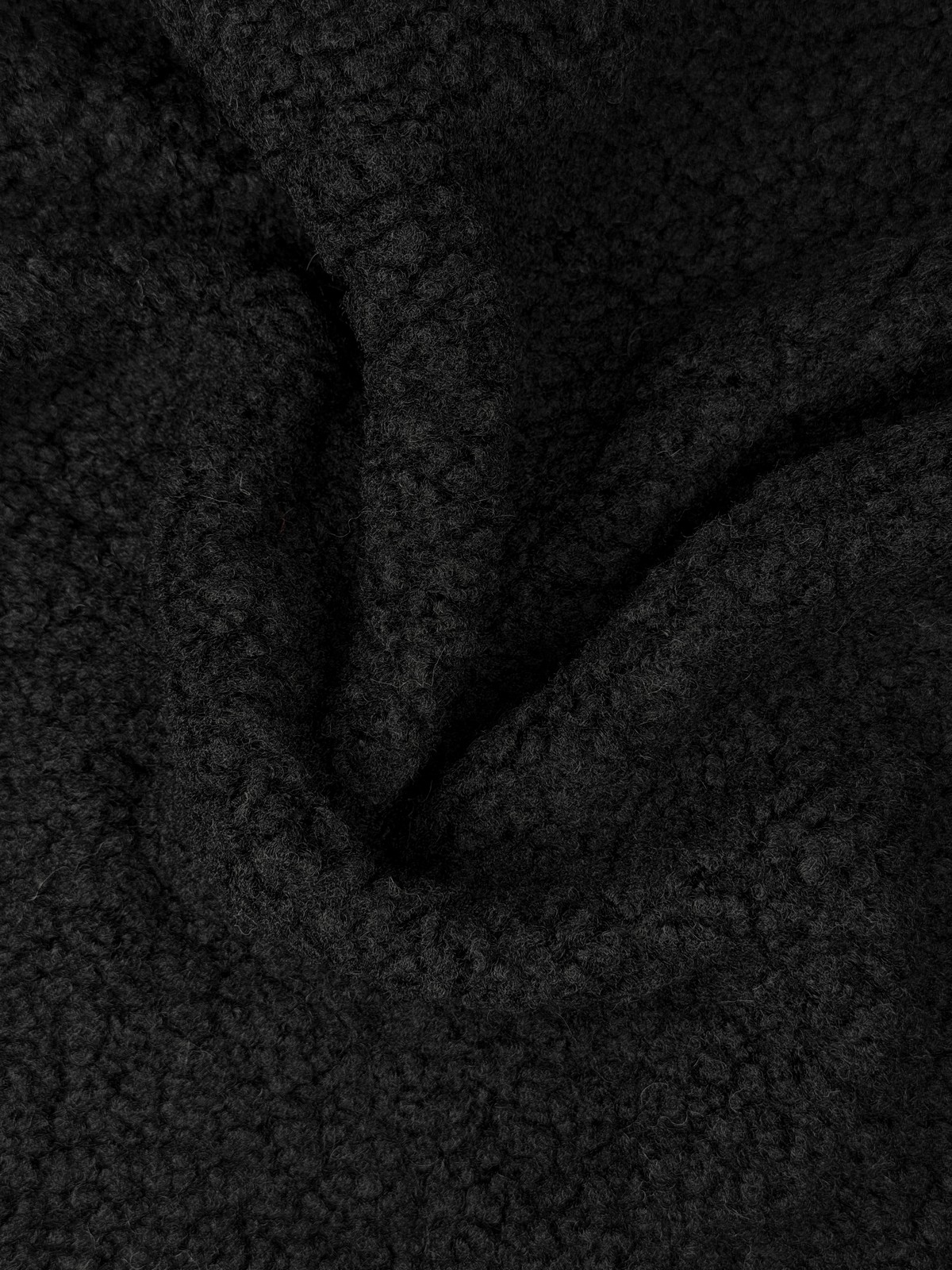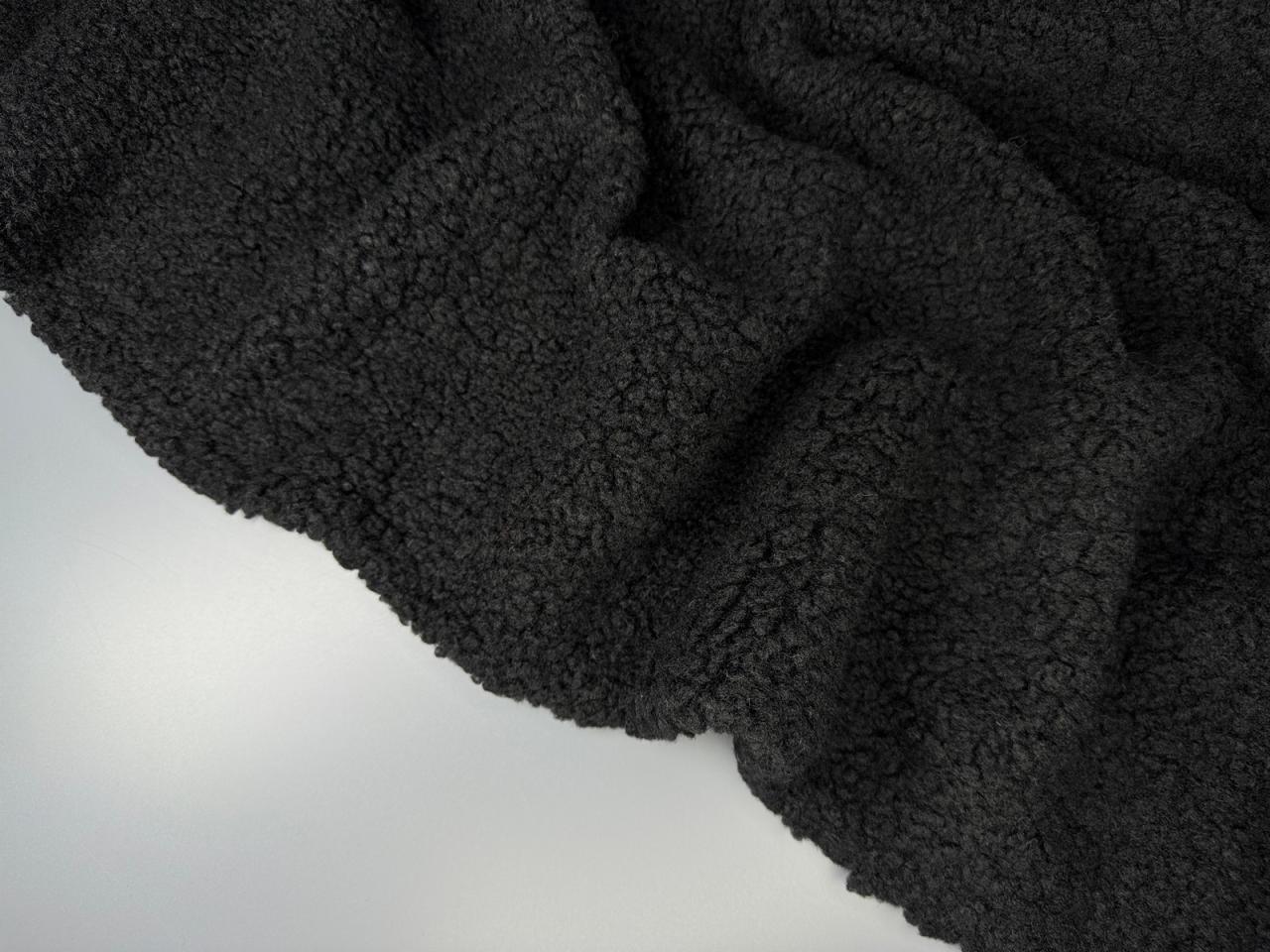 Искусственный мех барашек черный. Синтетическое полотно с эффектным плотным кудрявым ворсом (длина около 0,5 см) на лицевой стороне и слегка ворсовой изнанкой. Красиво переливается на свету. Обладает малой эластичностью. Хорошо держит и восстанавливает форму. Не сминается. При пошиве рекомендуем сажать на подкладку.