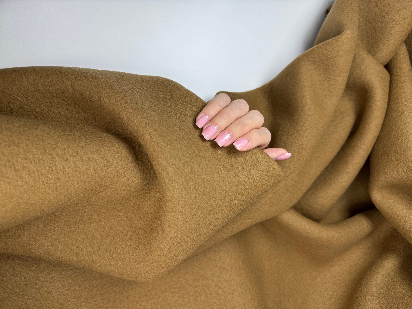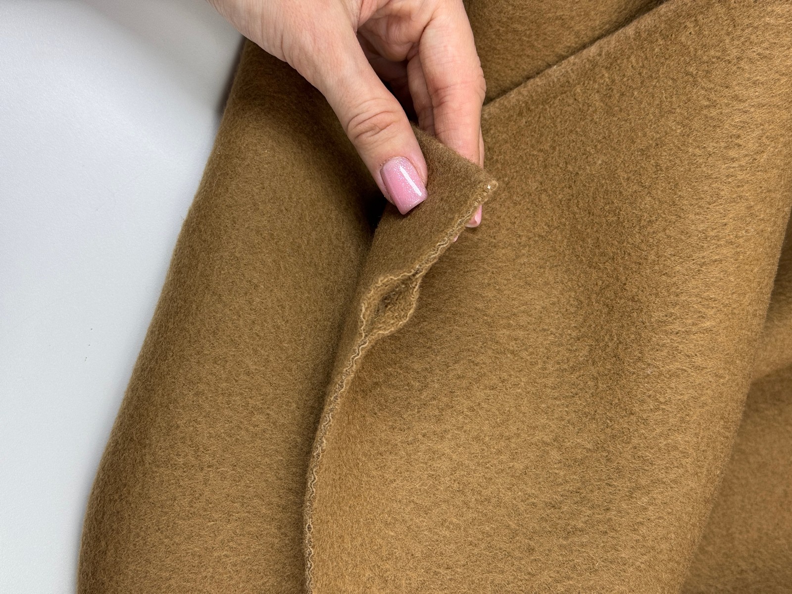 Пальтовая шерсть цвет Мокрый песок. Смесовый состав на основе шерсти и полиэстера. Высокая плотность 450 гр и ширина 140 см. Создана по технологии дабл фейс, что позволяет шить изделия на обе стороны и без использования подкладки. Не тянется. Закладывается в крупные складки. Обладает малой сминаемостью. Быстро восстанавливает форму. Производство Италия.