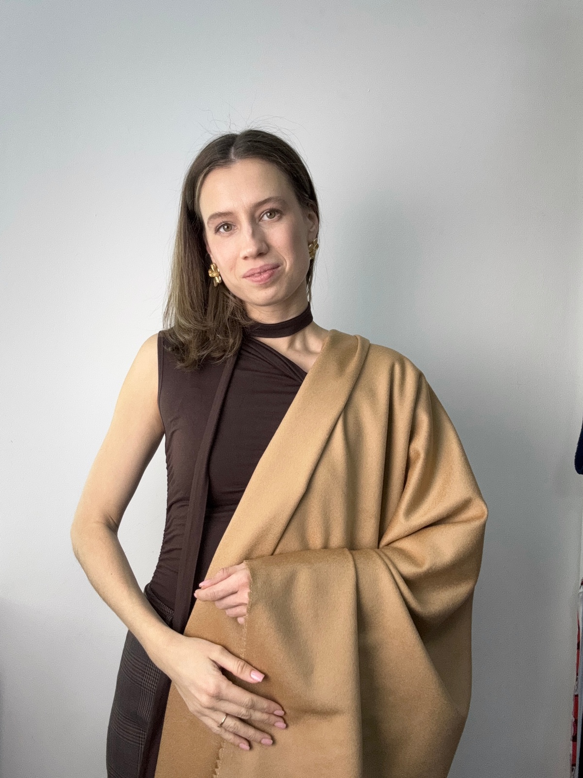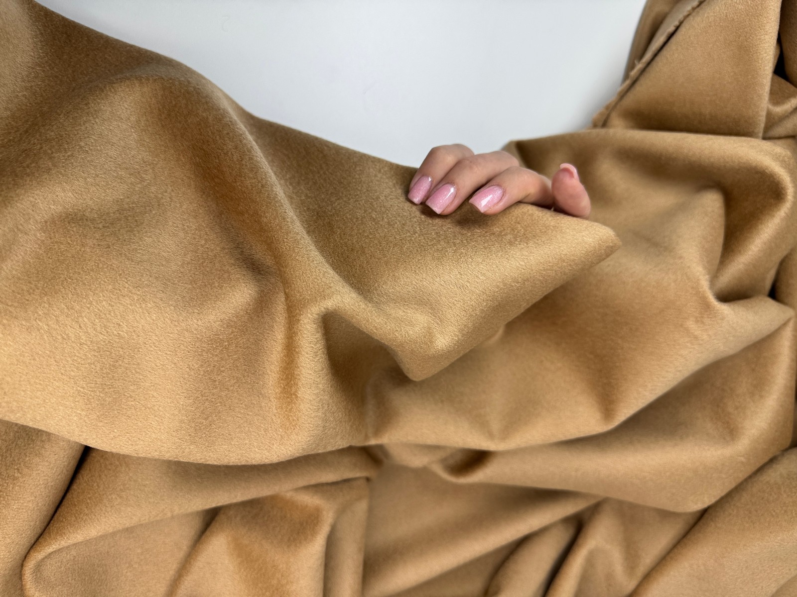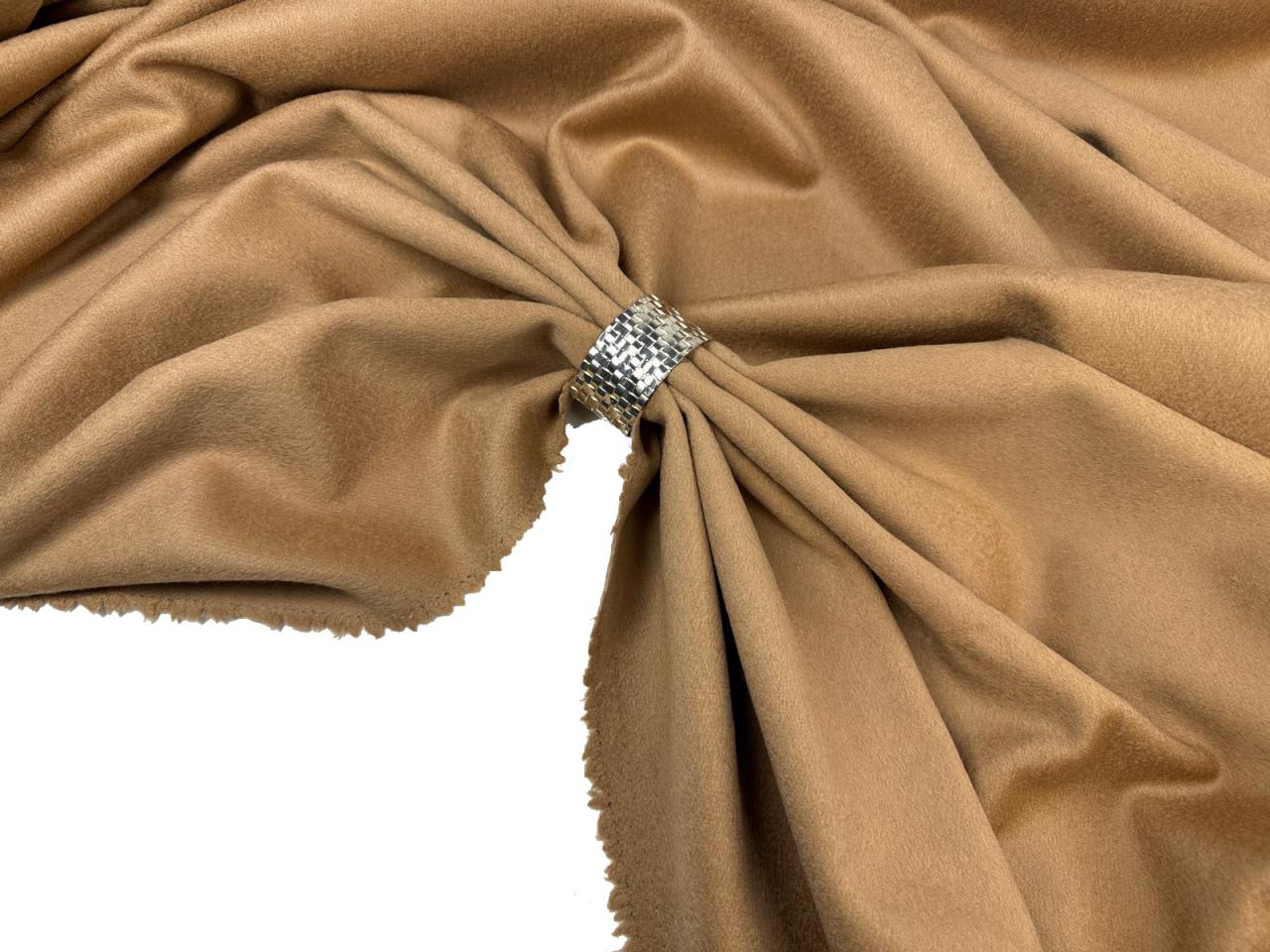 Пальтовая ткань цвет Сливочный ирис из 100% шерсти. Плотность 450 гр и ширина 140 см. Лицевая сторона с маленьким очень мягким ворсом, изнанка шероховатая и требует подкладки. Закладывается в мягкие пластичные складки. Малая эластичность. Малая сминаемость. Производство Италия.