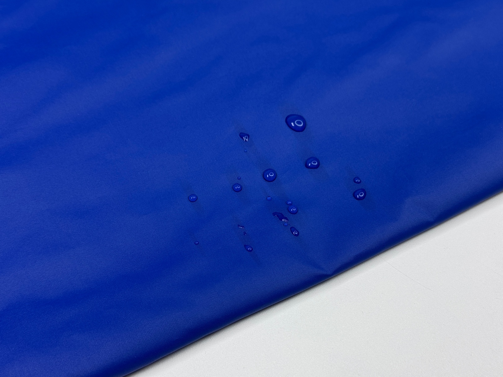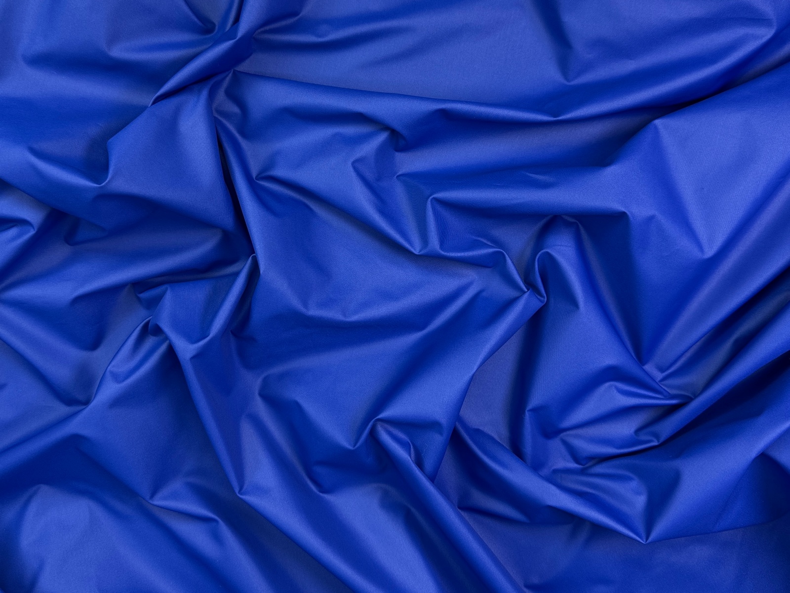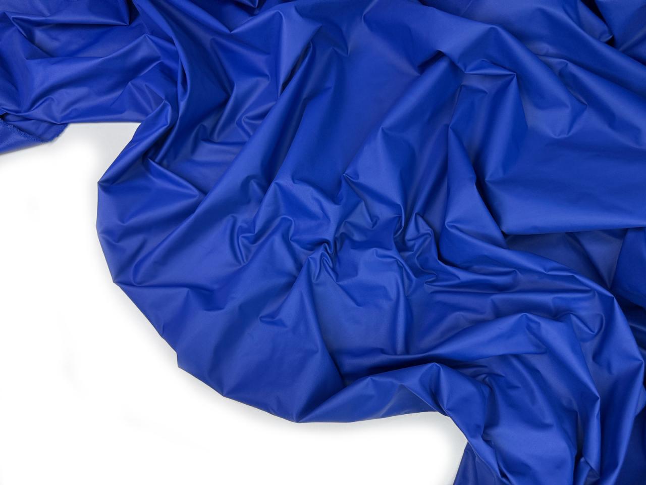 Ткань плащевая цвет ультрамарин матовый. Синтетическое полотно с водоотталкивающей пропиткой. Не тянется. Средняя сминаемость. Лицевая сторона с матовым блеском. Можно использовать, как самостоятельный материал, так и простегивать вместе с утеплителем для получения более теплого варианта. Закладывается в мелкие статичные складки.