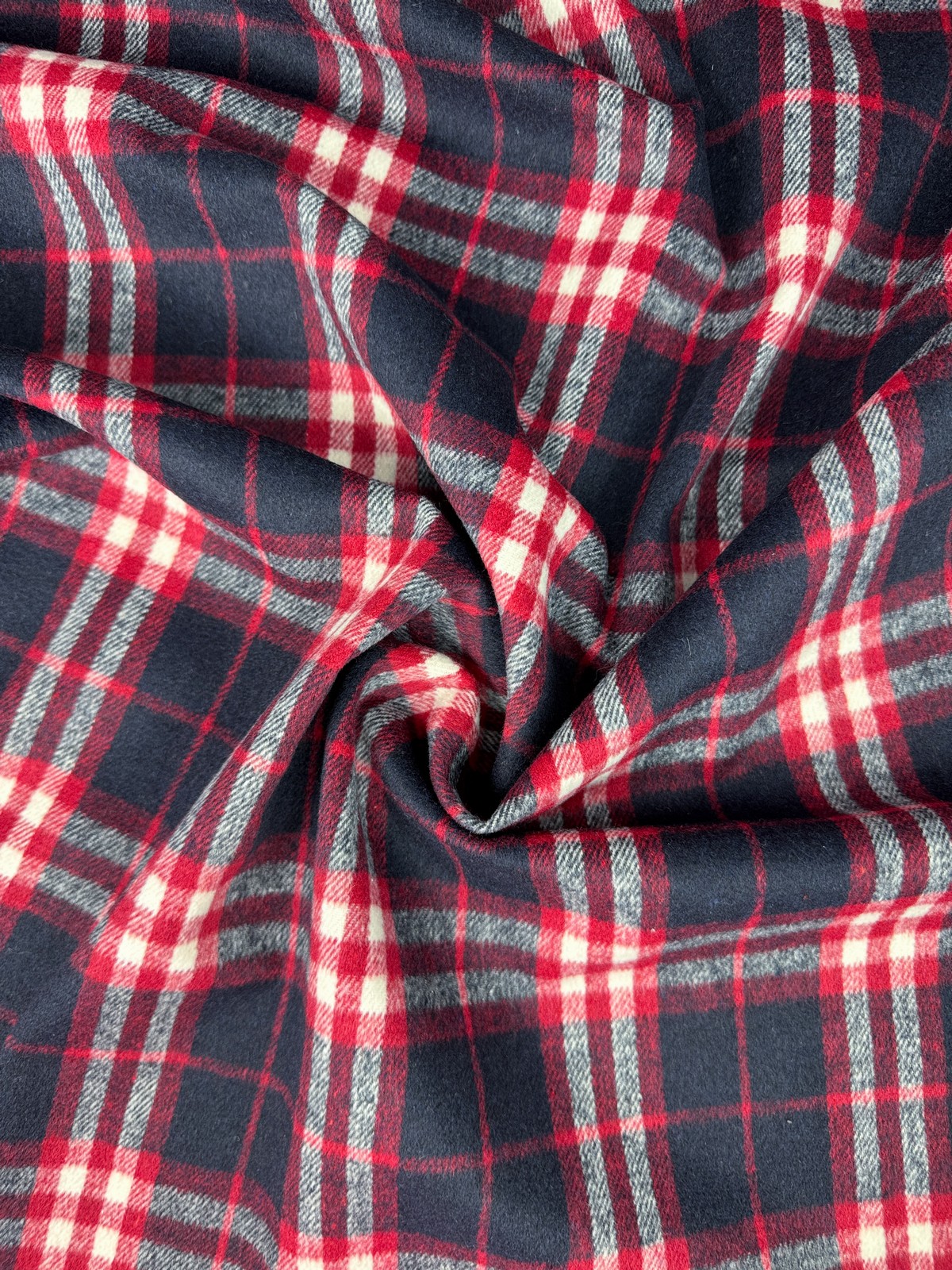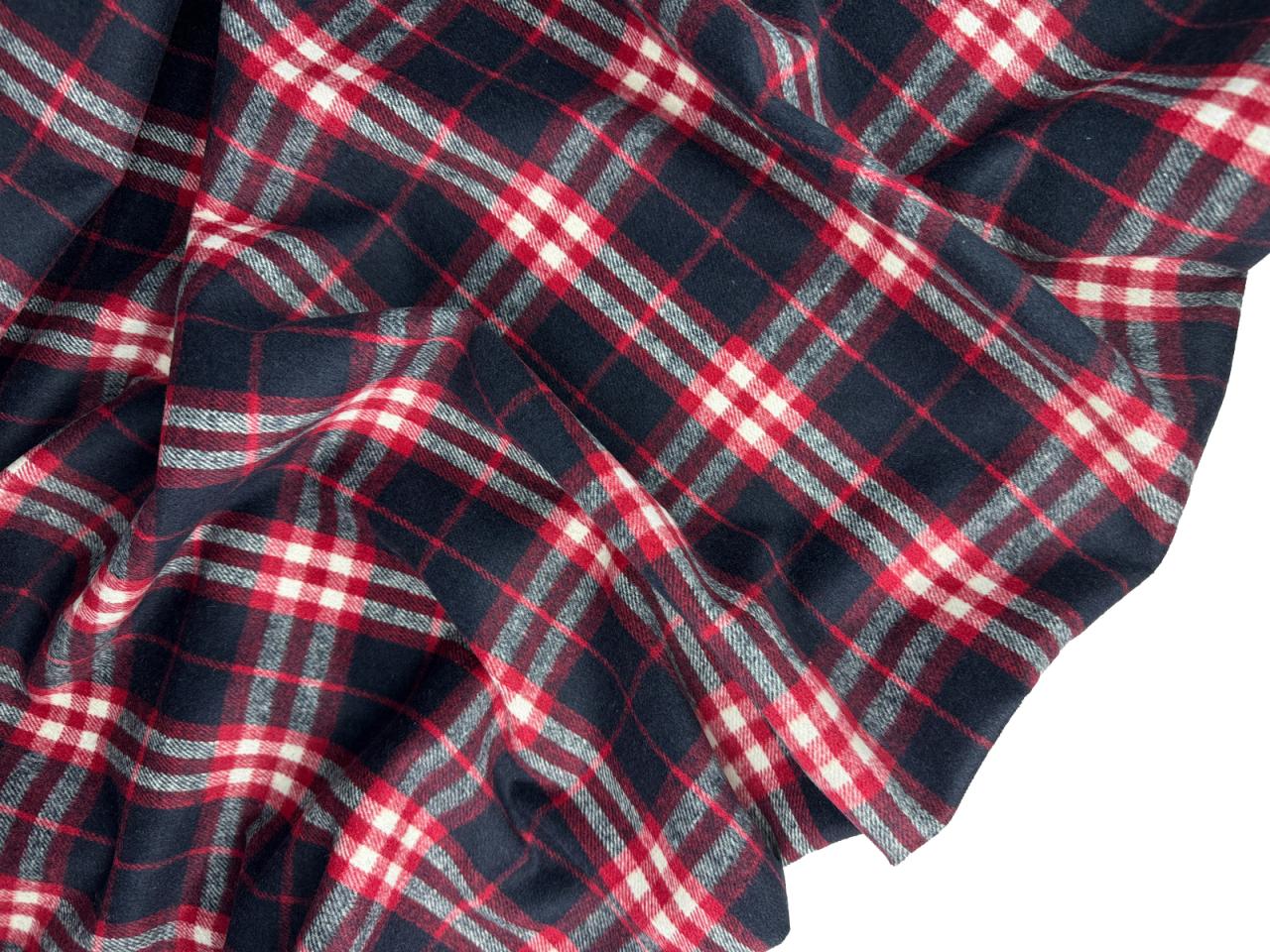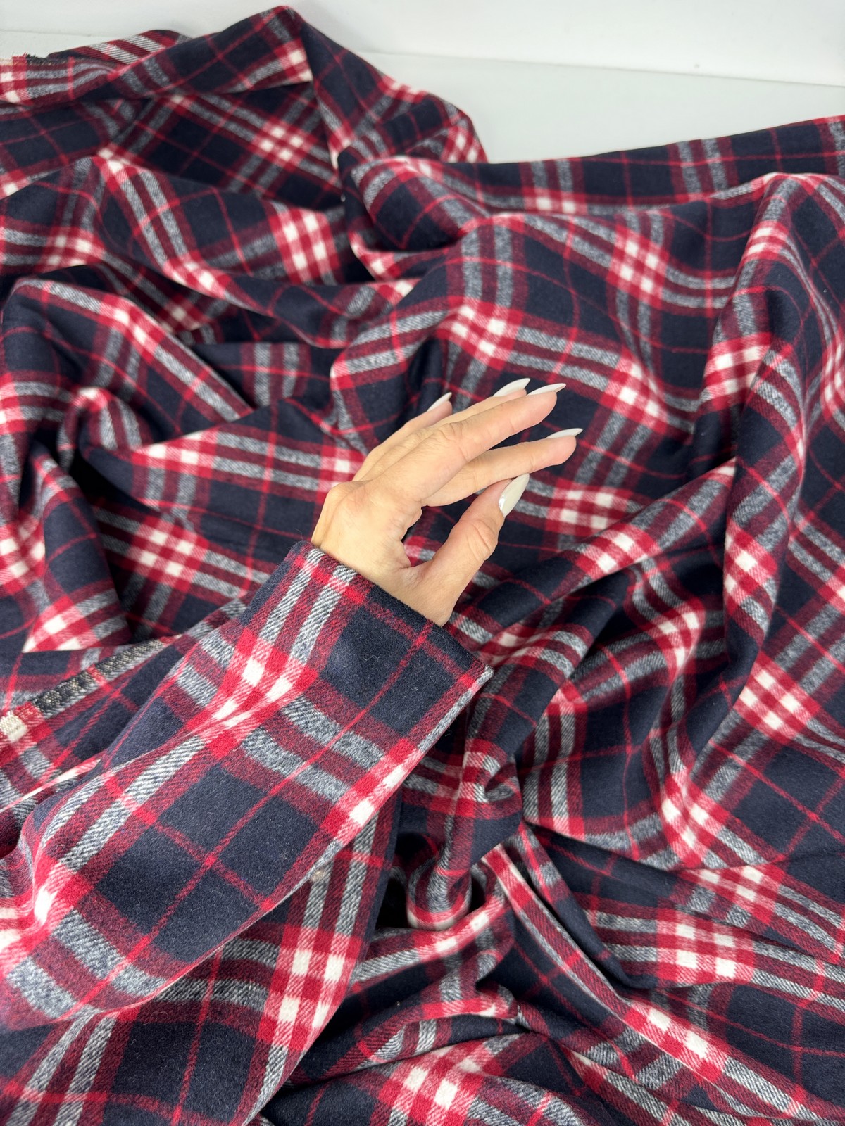 Ткань клетка шотландская цвет синий. Синтетическое плотное с плотностью 450 гр и шириной 150 см. Лицевая с небольшим ворсом, изнанка гладкая. Не тянется, учитывайте это при выборе модели. Закладывается в мягкие небольшие складки. Хорошо держит форму. Не мнется. Минимальная усадка 3%.