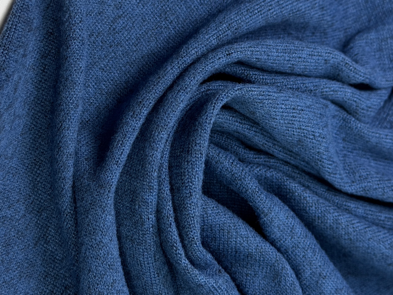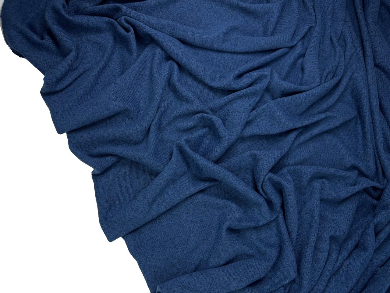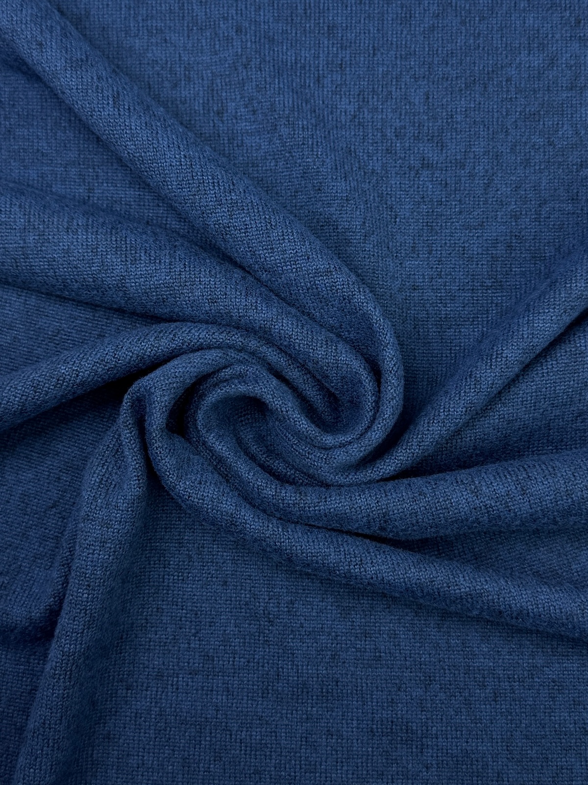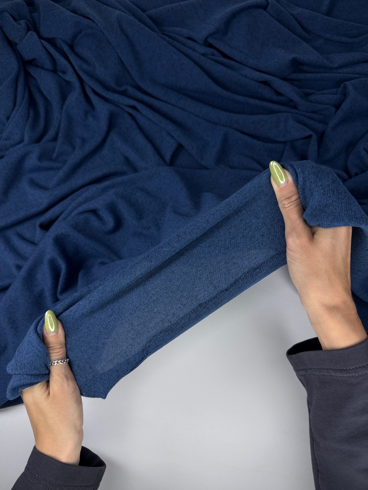 Вязаный трикотаж сандра цвет джинс с меланжевым эффектом. Мягкое трикотажное полотно малой плотности (220 гр) с высокой эластичностью. Ниспадает, струится, закладывается в тонкие складки. Не дает усадку. Край не сыпется, но требует обработки. Хорошо тянется и возвращается в исходную форму.