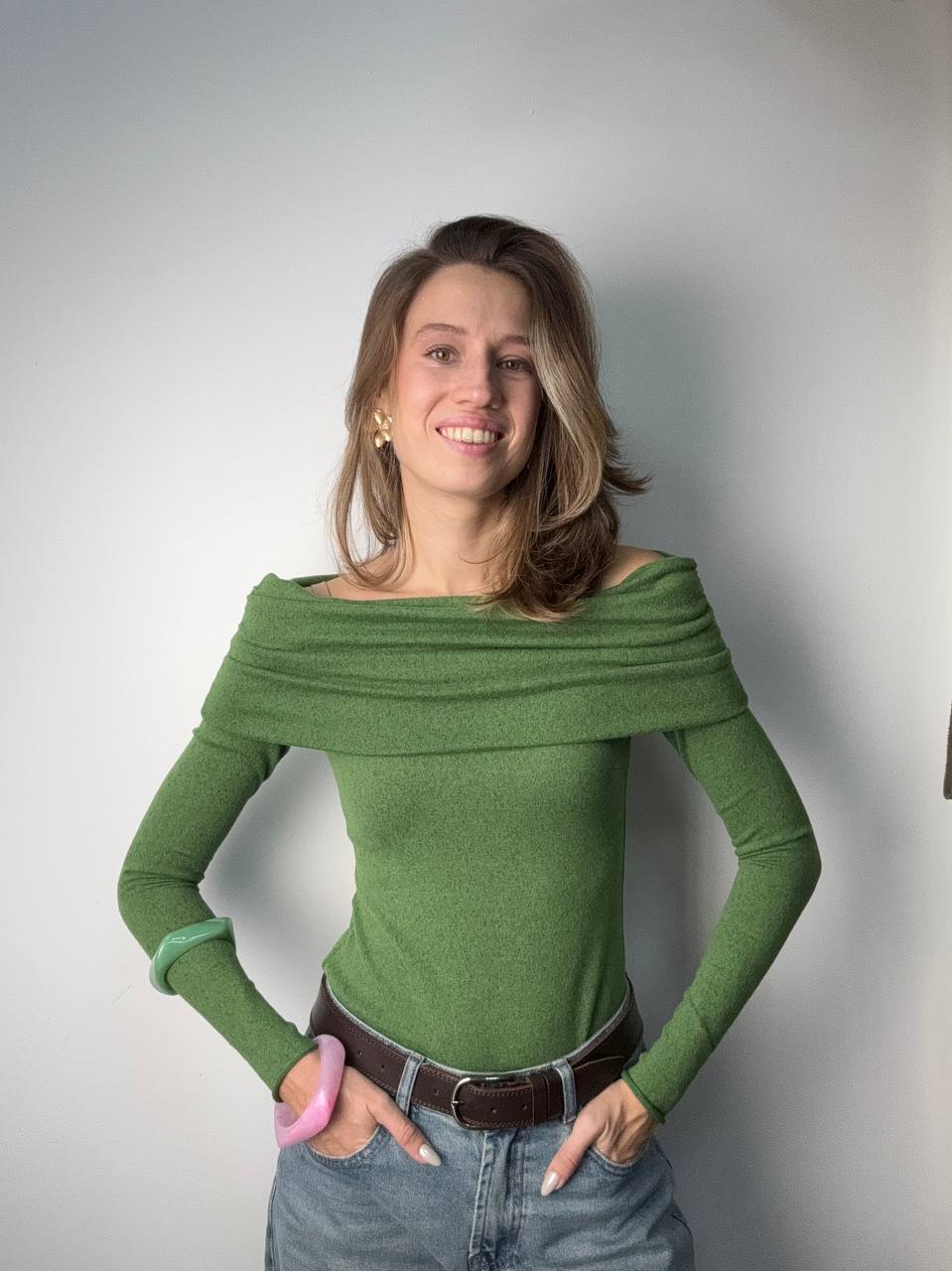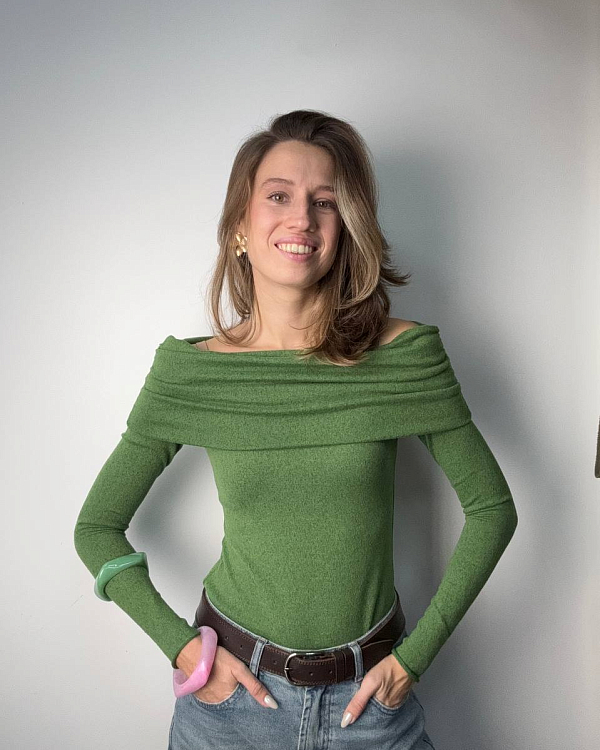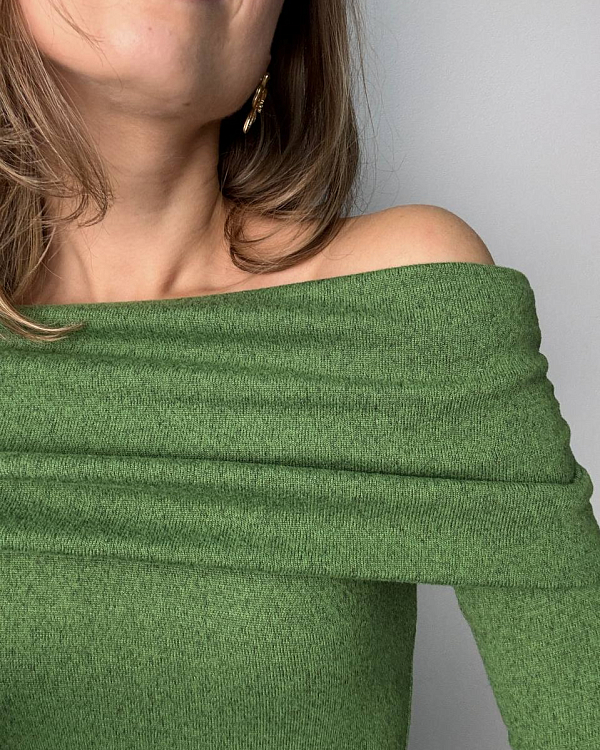 Наш прекрасная Елизавета (https://vk.com/el.garibyan) пошила вот такой шикарный джемпер с открытыми плечами из ткани из новой коллекции - вязаный трикотаж Сандра. Такое полотно имеет не большую плотность в 220 гр., что делает его прекрасным вариантом для первого слоя. Хорошо тянется и возвращает форму, а значит прослужит долго. Хорошая пластичность позволит реализовать самые разные варианты кроя. Края можно не обрабатывать, они не осыпаются, а аккуратно закручиваются.