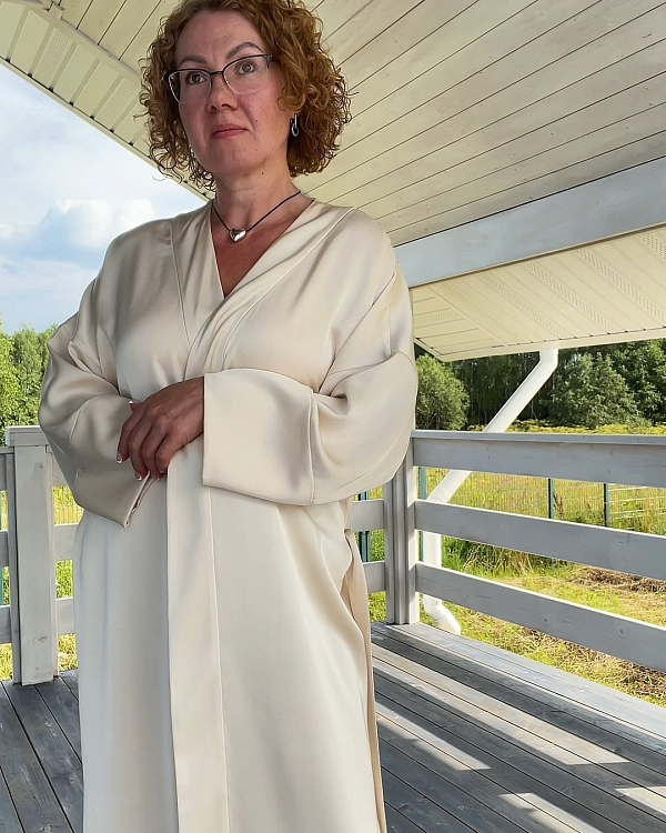 Вот такой женственный и чувственный пошив от Ольги Бортниковй ( https://vk.com/olga_v_bortnikova ). В этом году мы значительно расширили ассортимент тканей в нашем интернет-магазине, и одной из первых новинок стал - дубайский шелк. Как и любое синтетическое полотно, он имеет не большую цену. И многие боялись, что на ткани будет легко оставить зацеп, что она плохо держит форму и быстро превратиться в тряпку. И именно этот пошив доказал обратное. Посмотрите как дорого и богемно выглядит халат, какими изящными округлыми складками формируется объем. Спасибо Ольге за такой шикарный эксперимент. А заказать атласные и шелковые ткани вы можете по ссылке.