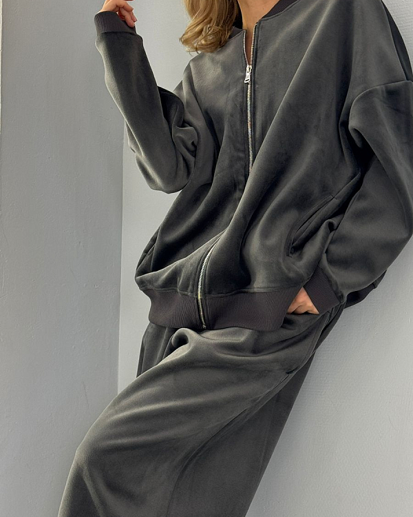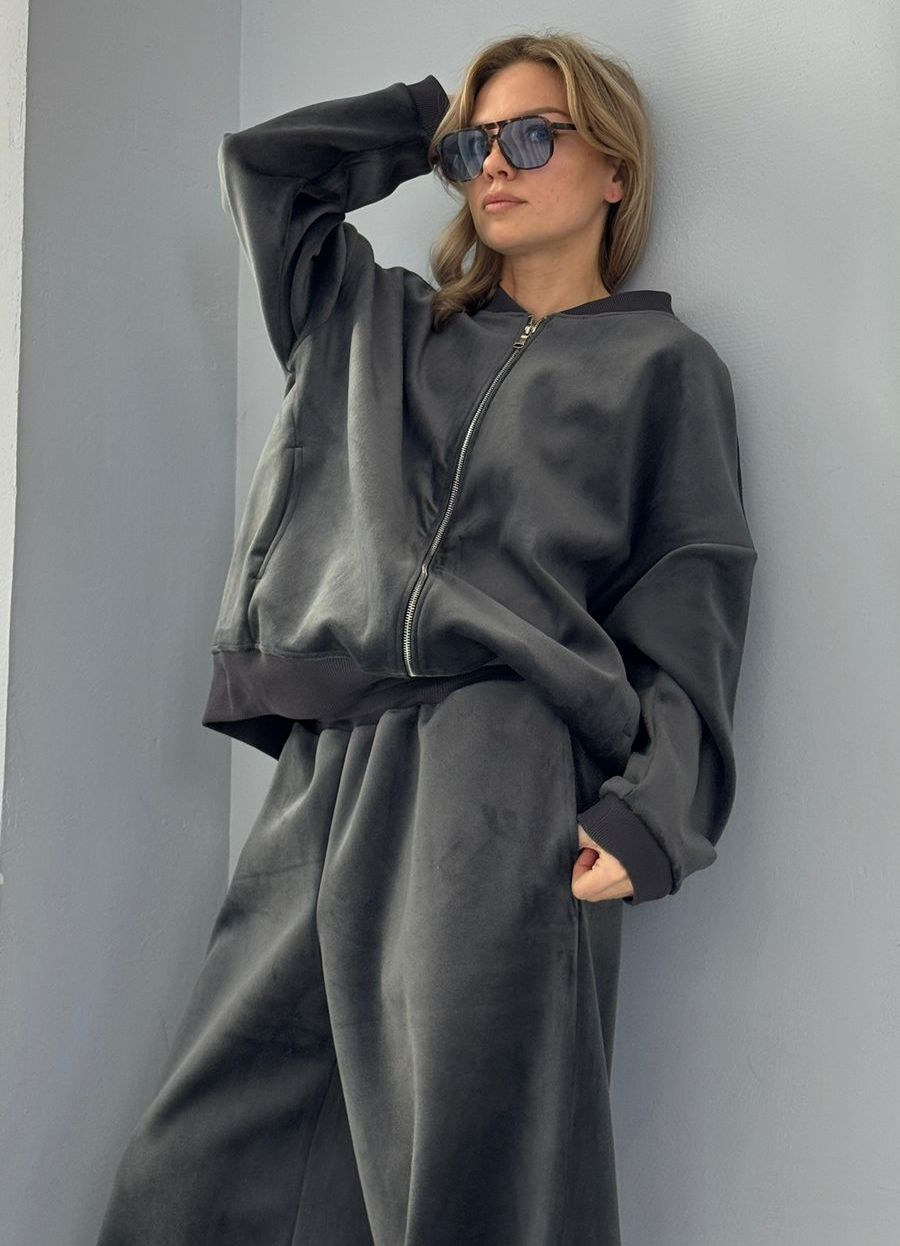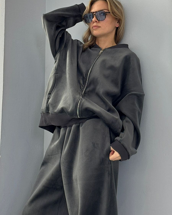Благодарим бренд GARIPOVA (https://t.me/garipovass) за фото отзыв - шикарный костюм в стиле спорт-шик в цвете Графит. У этого полотна много преимуществ. 1. Можно жить на 2 стороны. Сам покупатель выбирает, что ему милее, часто сочетают разные стороны в одном изделии. 2. Не вытирается. Много вопросов поступает в соц сети о том, выбирается ли он на локтях, или на штанинах. Нет. 3. Очень красиво переливается на свету. 4. Достаточно теплый чтобы обеспечить комфорт и уют в демисезон. Так что если захотелось чего-то новенького, то футер на велюре - отличный выбор.