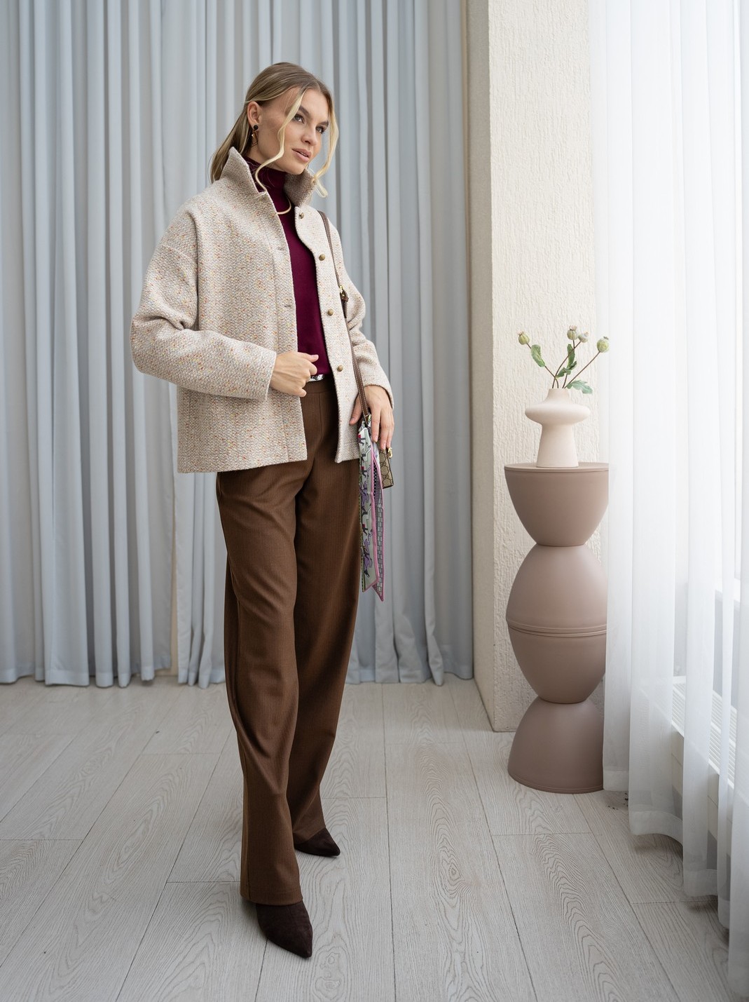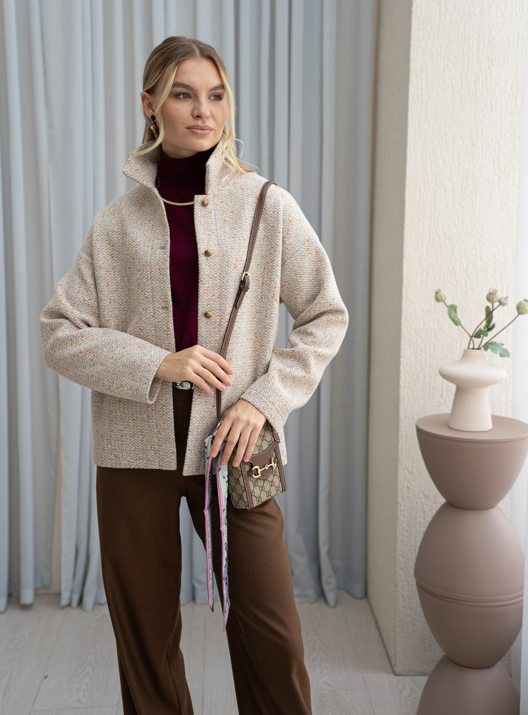Изящный жакет без подкладки из ткани букле/меланж/люрекс в цвете Светлый Беж. Изящный мягкий крой с минимумом декоративных элементов хорошо дополняется красивой и сложной фактурой самого полотна. Такая ткань легка в обработке, приятная к телу. Такой жакет можно носить практический круглый год, сочетая с футболкой летом или шерстяной водолазкой в более холодный период времени. Благодарим нашего несменного партнера - Российский бренд женской одежды - FILGO за предоставленный фотоматериал.