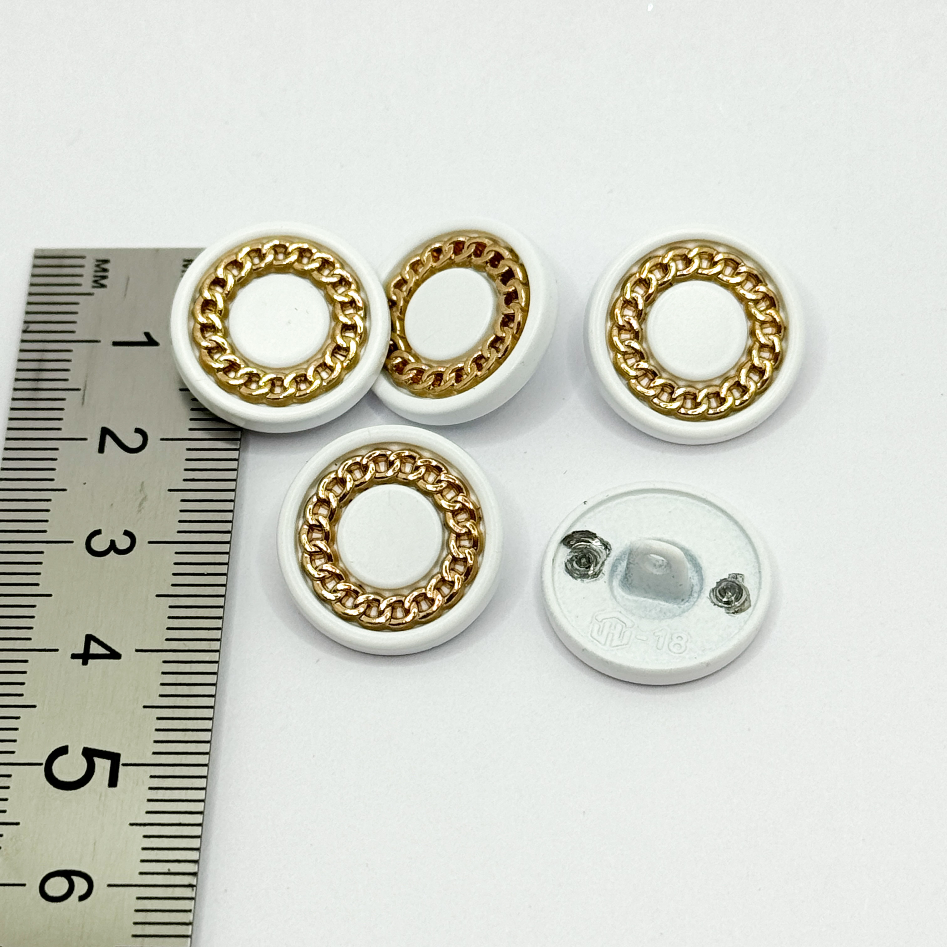 Пуговица металл Цепь белый/золото, 18мм