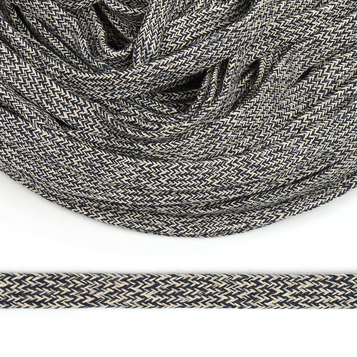 Шнур плоский 100%хл Меланж темно-синий/бежевый, 12мм