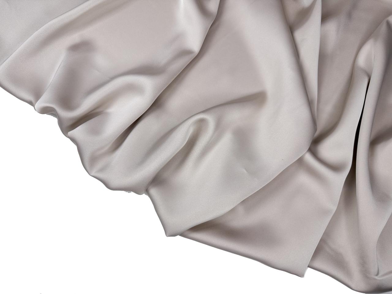 Дубайский шелк цвет жемчужный – вид атласа с шелковистой поверхностью. Струящееся пластичное полотно, дает эффектные драпировки. Растяжим по поперечной нити. Средняя сминаемость. Не дает усадку. Плотненький. Никаких пятен от воды.Не боится зацепок. Идеально подходит для кроя изделий по косой!