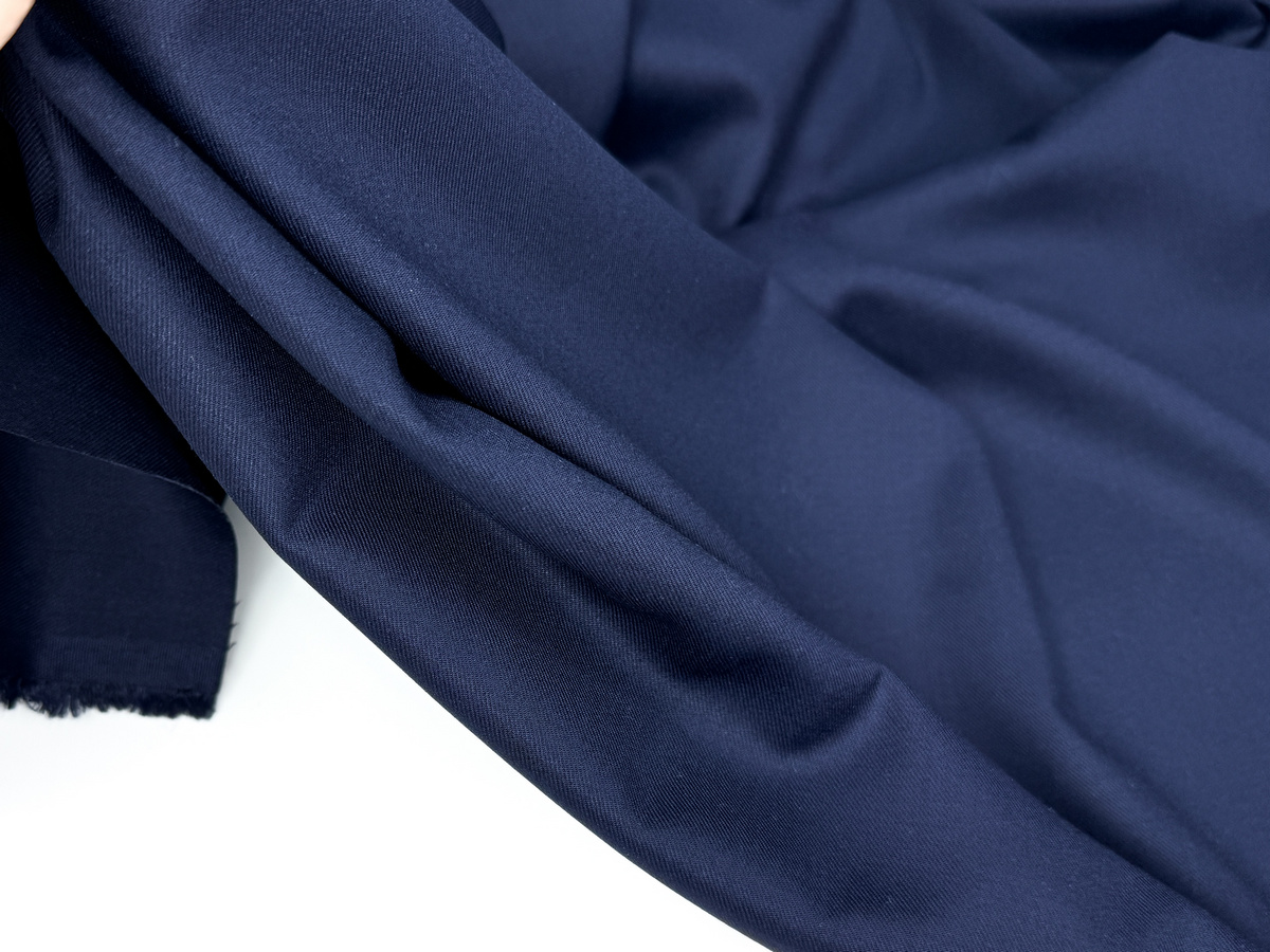 Костюмная ткань смесового состава на основе шерсти и полиэстера цвет Темно-синий. Имеет гладкую лицевую сторону с диагональным плетением. Ширина полотна 145 см. Средняя плотность в 280 гр. Идеальный классический вариант для широкого ассортимента пошива. Плотный и устойчивый материал, который хорошо держит форму, складки. Усадка до 5%.
